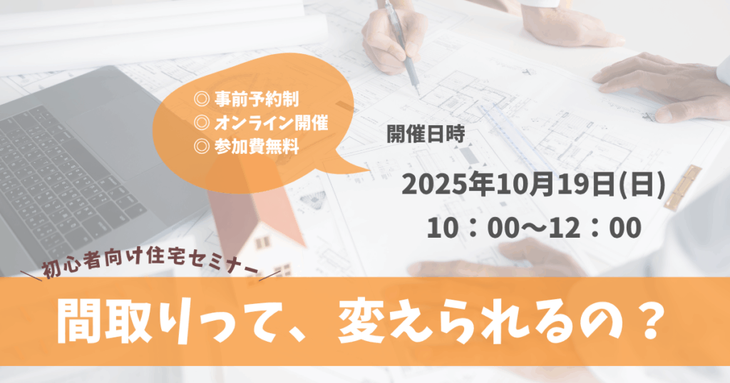 このセミナーでは、「間取りって、変えられるんだ!」という驚きと、「自分らしい暮らしをつくる楽しさ」を感じてもらえる時間をお届けします。