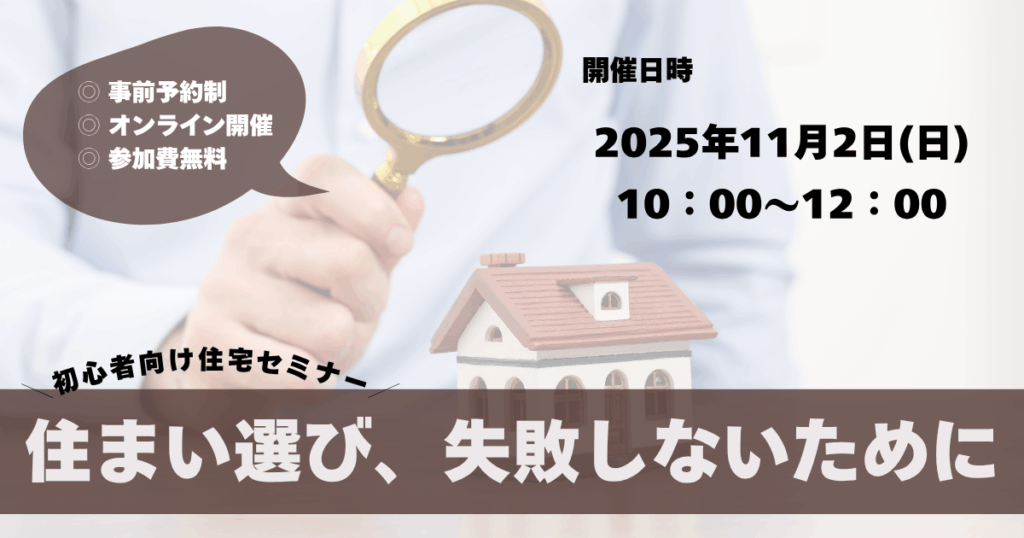 このセミナーでは、失敗談を“学び”に変えながら、初心者でも安心して住まい選びができるよう、チェックリスト形式で選び方の視点を整理します。