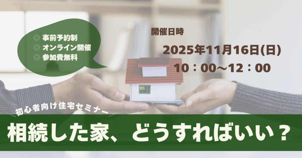 このセミナーでは、相続した家の扱い方と、税金・手続き・活用方法まで、初心者にもわかりやすく解説します。