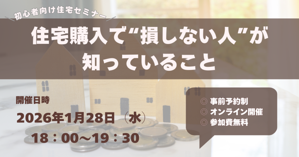 【1月28日開催】その選び方、ちょっと待って!住宅購入で“損しない人”が知っていることセミナー