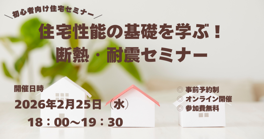 【2月25日開催】住宅性能の基礎を学ぶ!断熱・耐震セミナー