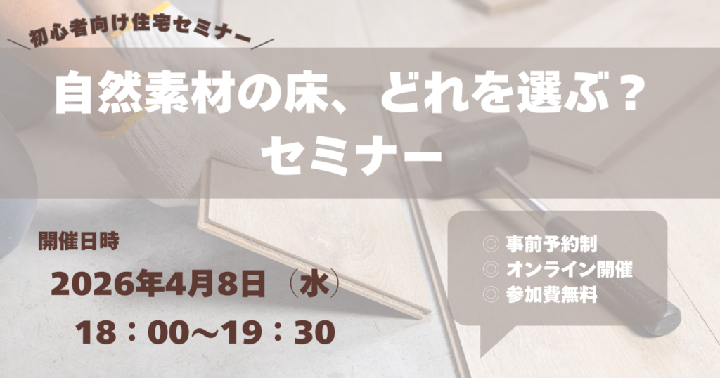 セミナーでは、実際に自然素材の床を選んだご家族の声や、暮らしの変化もご紹介します。